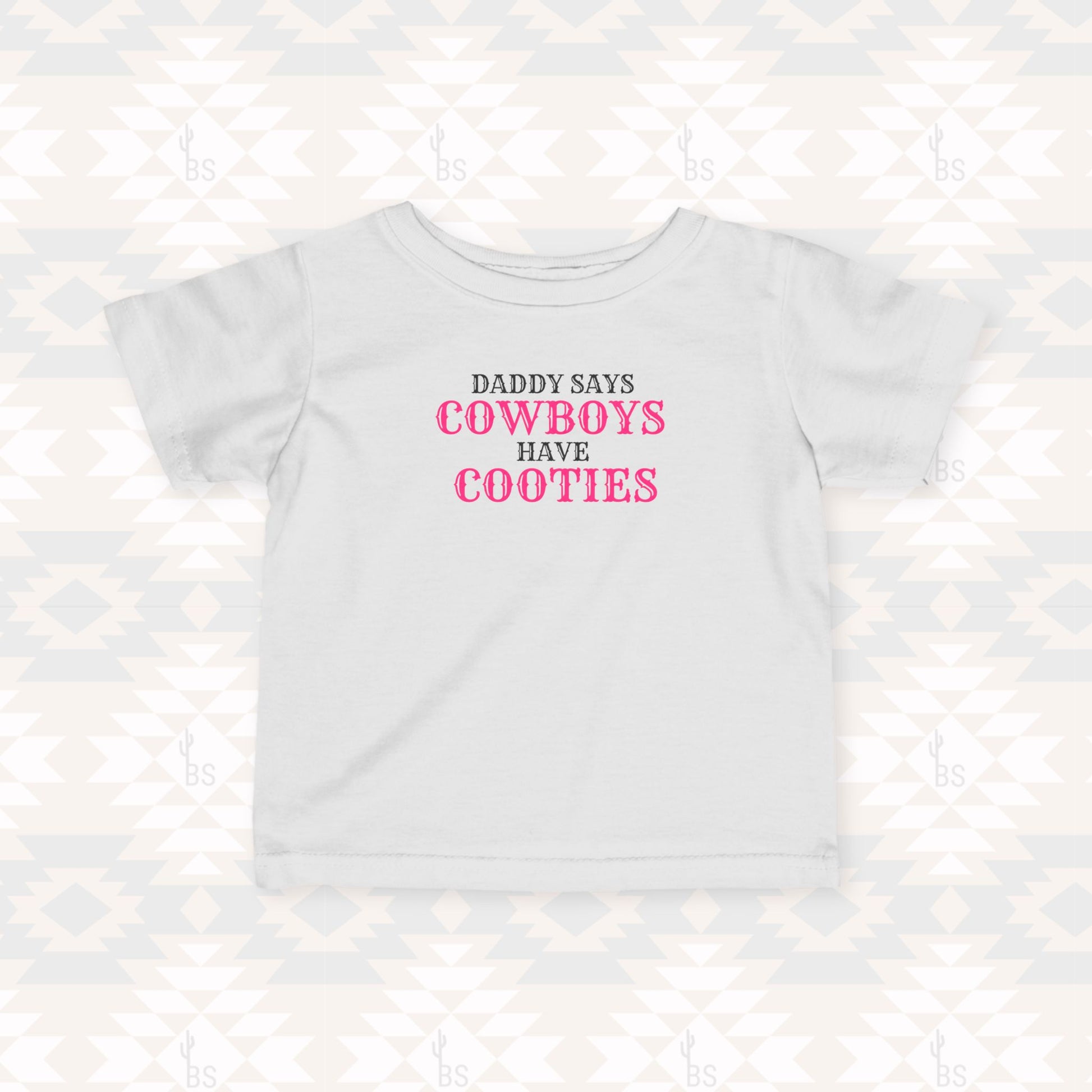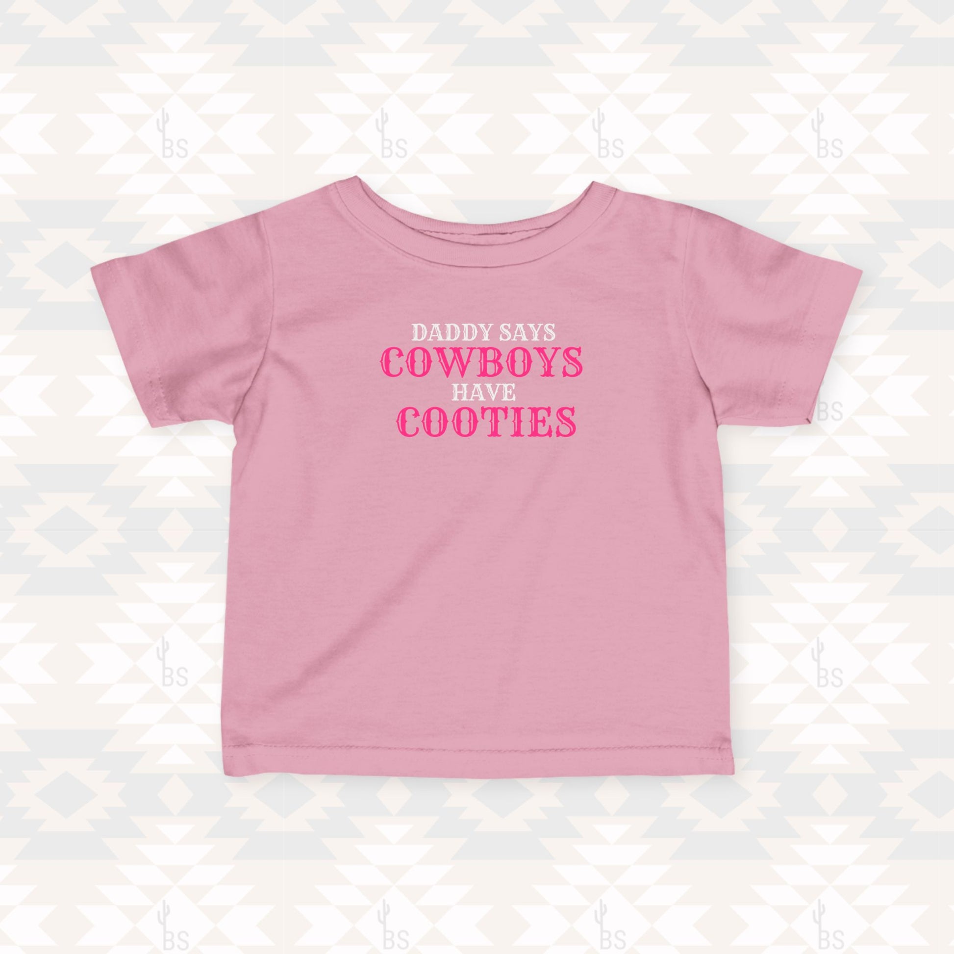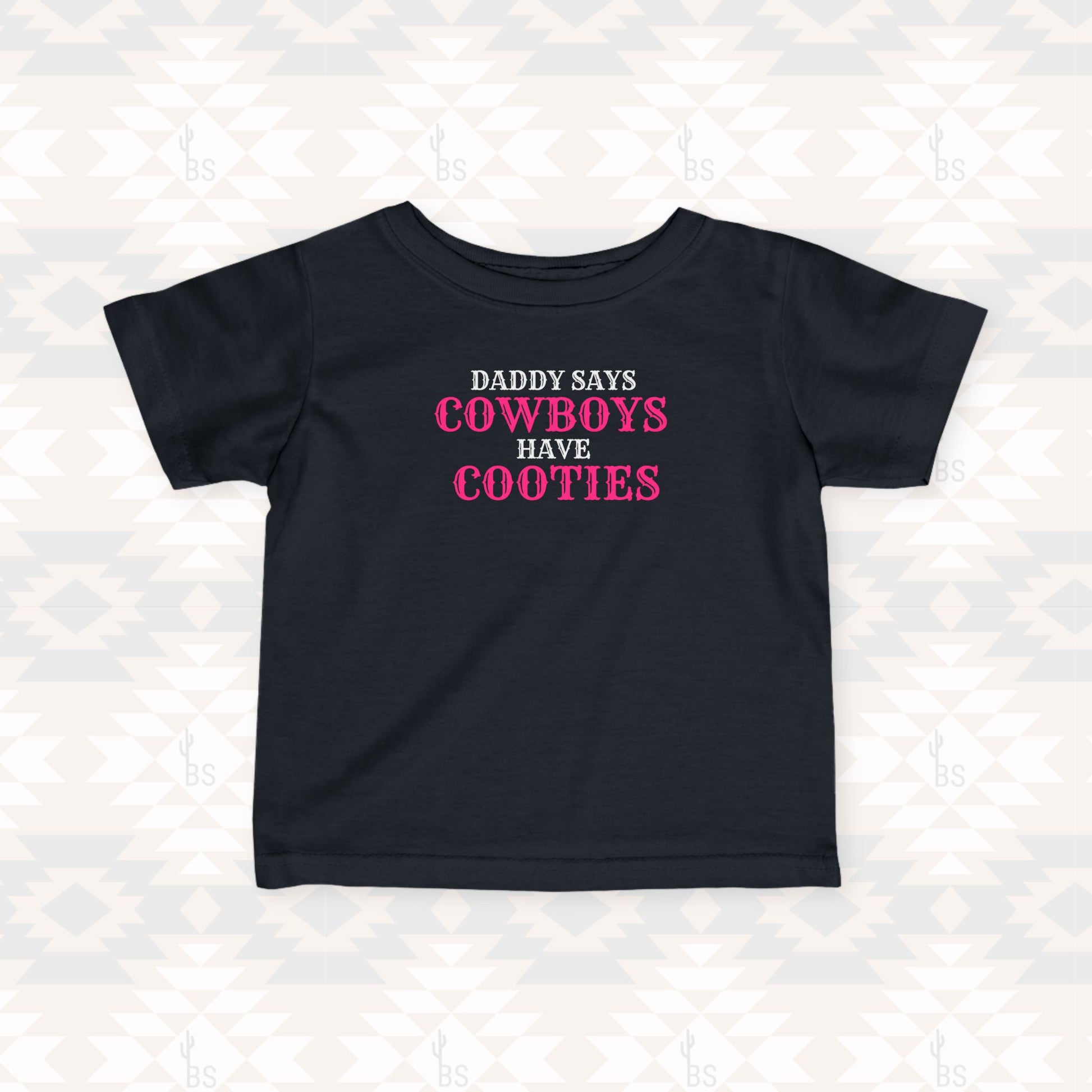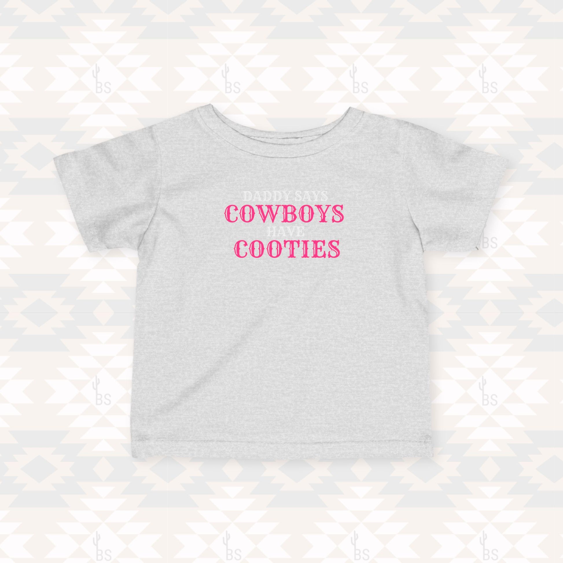 Our “Daddy Says Cowboys Have Cooties” kids tee is perfect for your spunky cowgirls who already know how to steal the show.