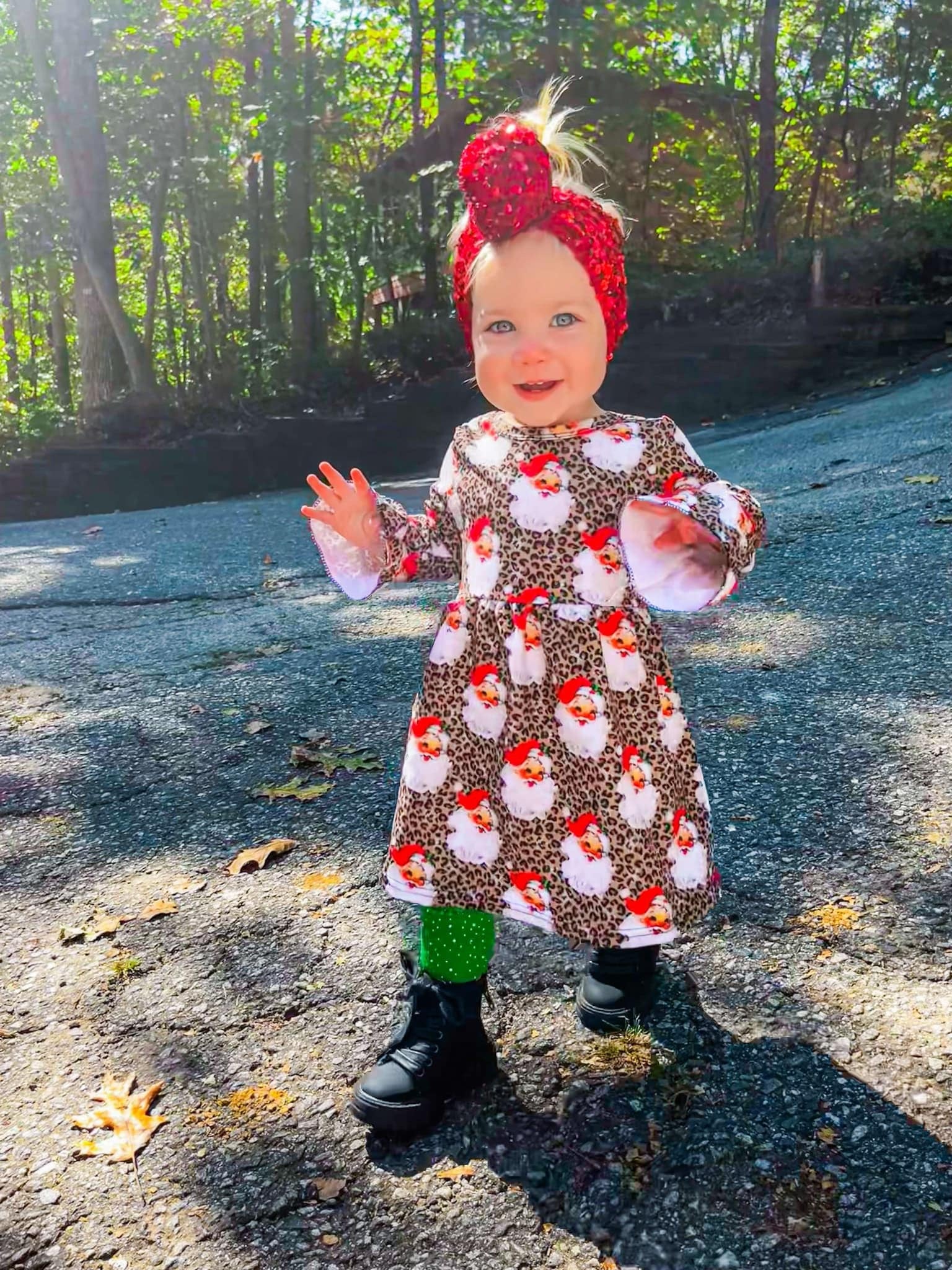 Leopard santa bell sleeve dress