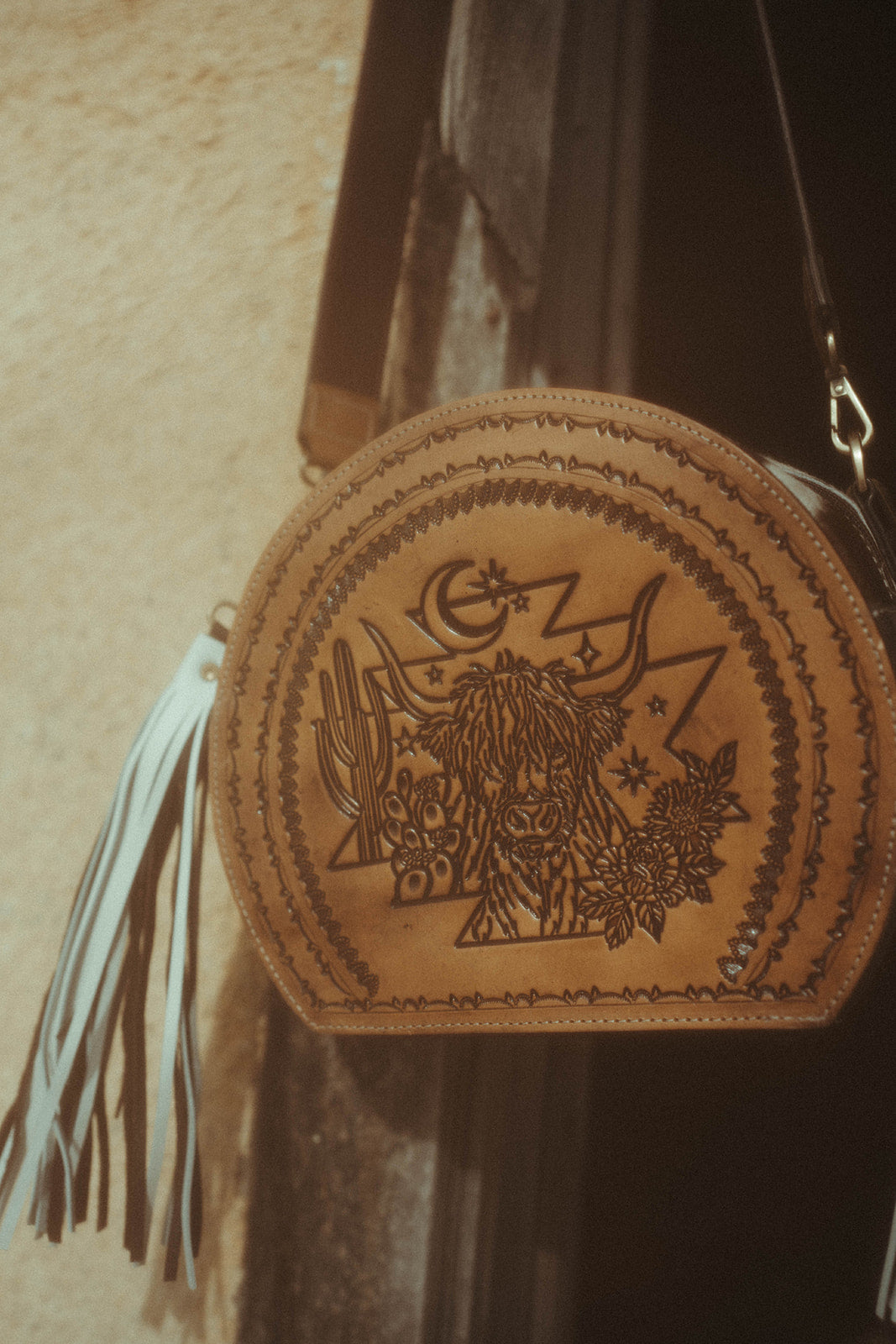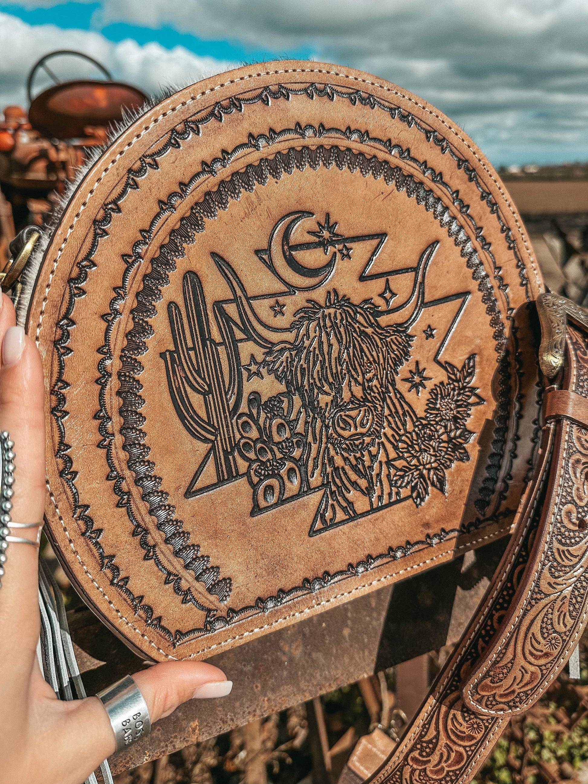 Introducing The Bucking Canteen, a Haute Southern Hyde by Beth Marie Exclusive! Made for the Wild Wild Western gal! She features tons of space and one cubby slot. And a little added touch of removeable fringe tassels on the side. The rear allows one 6.5" x 5.5" zipper pocket. Keep em, or remove them and gift them as keychain charms :) She features and adjustable western belt buckle strap.